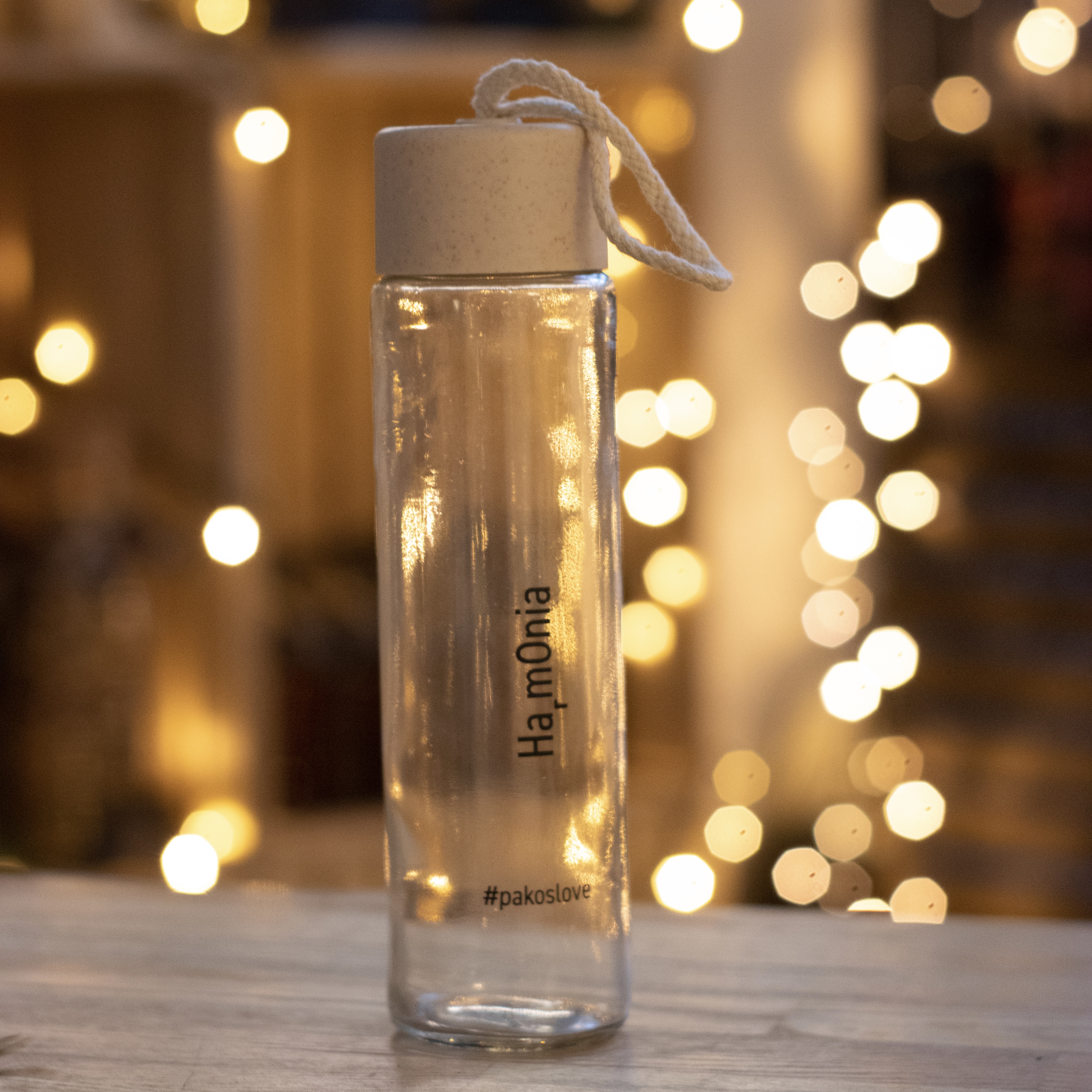 Butelka szklana w wygodnym rozmiarze i pojemności 350 ml jest świetną alternatywą dla plastikowych butelek. Posiada zakrętkę ze sznurkiem, co ułatwia trzymanie. Zakrętka jest wykonana z tworzywa zmieszanego ze słomą pszenną.